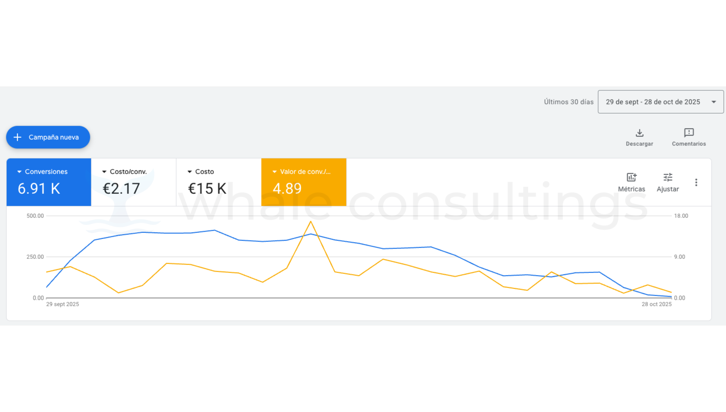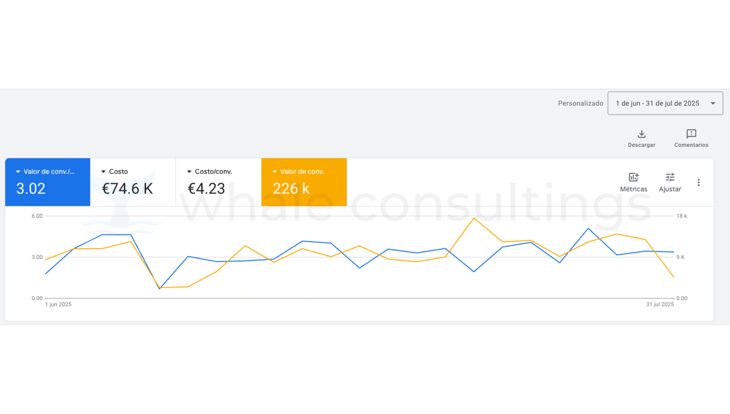 "Whale transformó nuestras campañas en Meta en menos de tres meses. Pasamos de resultados inestables a un ROAS 4.2x sostenido y una facturación +38 %. Son estratégicos, claros y se implican como si fueran parte del equipo."